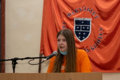 Голова студентської ради факультету Наталія Мартинова розповіла присутнім про те, що являє собою студентська рада, яку вона має структуру та чим займається кожний окремий відділ. Виступ Наталії супроводжувався яскравою презентацією, якій передувала демонстрація відео-ролику найяскравіших подій студентського життя факультету. Більш детально про роботу кожного сектору студентської ради факультету розповіли їх голови, виступи яких були дуже жвавими та емоційними.