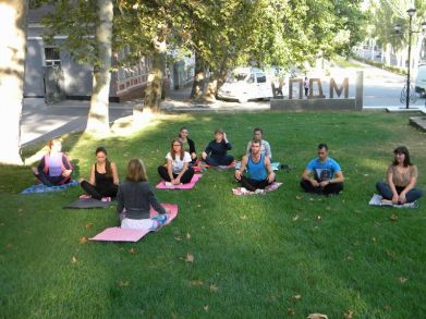 16 вересня біля головного корпусу МДПУ ім. Богдана Хмельницького практикуючий психолог, йога-тічер Олеся Калініна провела безкоштовне заняття зі спортивної йоги для для студентів ТДАТУ та МДПУ.