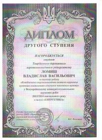 1. Ломиш Владислав, енергетичний факультет, керівник к.т.н., доц. Жарков В.Я.