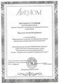 2. Прокопов Роман, енергетичний факультет, керівник к.т.н., доц. Жарков В.Я.