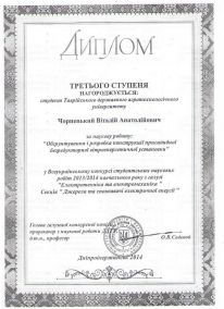 1. Чорненький Віталій, енергетичний факультет, керівник к.т.н., доц. Жарков В.Я.
