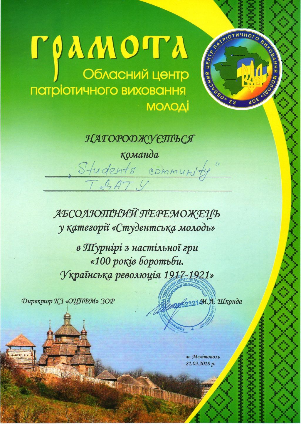 СТУДЕНТИ ТДАТУ – ПЕРЕМОЖЦІ ОБЛАСНОГО ТУРНІРУ З ІСТОРІЇ УКРАЇНИ!!!