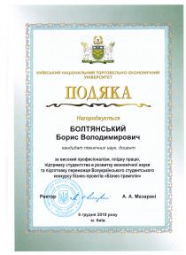 В свою чергу керівники проекту від ректора КНТЕУ д.е.н., професора, академіка НАПН України Мазаракі А.А. отримали подяки за високий професіоналізм, плідну працю, підтримку студентства в розвитку економічної науки та підготовку переможців конкурсу!