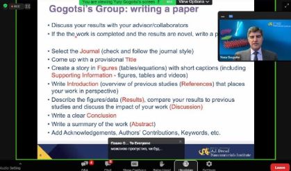 Відбулась чергова зустріч в рамках проєкту Ukraine Global Faculty. Студенти та викладачі факультету економіки та бізнесу Таврійського державного університету імені Дмитра Моторного прослухали лекцію українського і американського науковця в галузі хімії, матеріалознавства та нанотехнологій, заслуженого професора університету Дрекселя (США), директора інституту наноматеріалів імені Е.Дж. Дрекселя, ад’юнкт-професора Сумського державного університету, доктора технічних наук, професора матеріалознавства Юрія Гогоці на тему «Як написати чудову наукову роботу та опублікувати її».