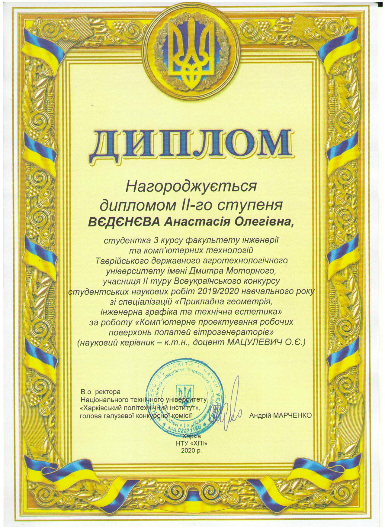 Студенти ТДАТУ у числі кращих за підсумками першого етапу Всеукраїнського конкурсу студентських наукових робіт за напрямом «Прикладна геометрія, інженерна графіка та технічна естетика»