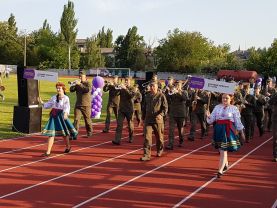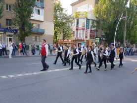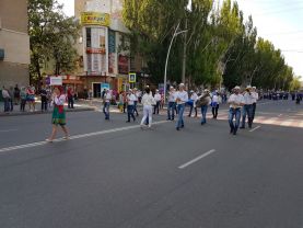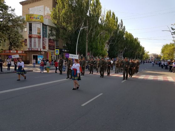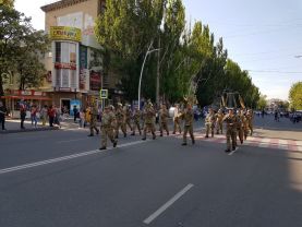 Учасники параду марширували по проспекту Б. Хмельницького від площі Перемоги до входу в парк культури і відпочинку ім. М. Горького.