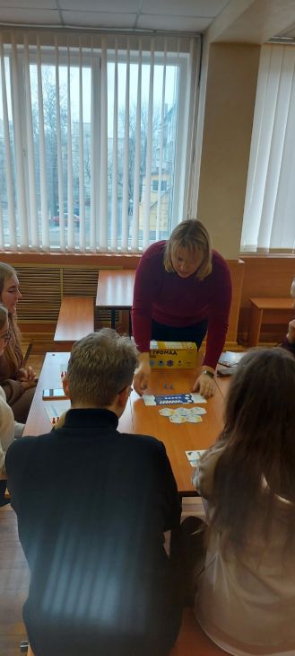 Гру провела голова правління громадської спілки «Соціальне підприємництво «Центр освіти дорослих «Перший» Тетяна Однорог, яка була запрошена на кафедру. Гра-тренінг «Світ Громад» дозволяє автоматизувати і масштабувати навчання в сфері громадянської освіти – формувати актуальні ціннісні установки, поведінкові моделі, навички 21 століття.