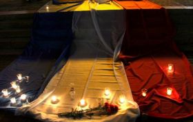Співчуваючі розклали прапор Франції, поклали квіти та свічки, як символ людських душ та вшанували хвилиною мовчання.