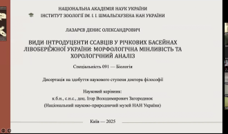 Днями в Інституті зоології імені І. І. Шмальгаузена НАН України (м. Київ) відбувся захист дисертації Дениса Лазарєва на здобуття наукового ступеня доктора філософії за спеціальністю 091 «Біологія» на тему: «Види-інтродуценти ссавців у річкових басейнах Лівобережної України: морфологічна мінливість та хорологічний аналіз».