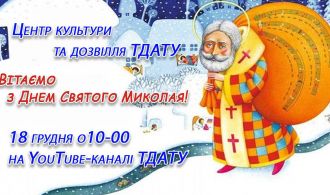 Центр культури та дозвілля і ТелеРадіоПресЦентр ТДАТУ 18 грудня о 10-00 запрошують всіх бажаючих долучитися до перегляду музичного вітання з Днем Святого Миколая.