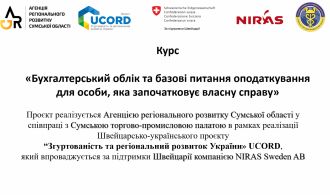 23-25 жовтня 2024 року викладачі кафедри фінансів, обліку і оподаткування ТДАТУ взяли участь в роботі Швейцарсько-українського проекту «Згуртованість та регіональний розвиток України» UCORD, в рамках якої Агенцією регіонального розвитку Сумської області у співпраці з Сумською торгово-промисловою палатою було проведено онлайн-курс «Бухгалтерський облік та базові питання оподаткування для особи, яка започатковує власну справу».
