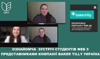 22 жовтня відбулась онлайн зустріч студентів спеціальностей 071 «Облік і оподаткування», 072 «Фінанси, банківська справа, страхування та фондовий ринок» та науково-педагогічних працівників кафедри фінансів, обліку і оподаткування ТДАТУ з HR-менеджеркою аудиторської та консалтингової компанії Baker Tilly Україна.
