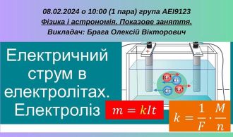 Днями викладач ВСП “Новокаховський фаховий коледж ТДАТУ” Олексій Брага провів показове заняття «Електричний струм в електролітах. Електроліз» з предмета «Фізика і астрономія» у групі АЕІ9123.