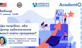 11 жовтня 2021 року відбувся черговий захід проєкту «Ініціатива академічної доброчесності та якості освіти» (Academic Integrity and Quality Initiative – Academic IQ), який упроваджується Американськими Радами з міжнародної освіти за сприяння Посольства США в Україні, Міністерства освіти і науки України та Національного агентства із забезпечення якості вищої освіти.