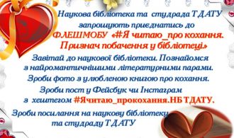 Наукова бібліотека та студрада ТДАТУ запрошують приєднатись до флешмобу до Дня Святого Валентина «#Я читаю_про кохання. Признач побачення у бібліотеці».