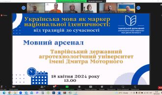 18 квітня 2024 р. у Таврійському державному агротехнологічному університеті імені Дмитра Моторного в рамках Мовного арсеналу «Українська мова як маркер національної ідентичності: від традицій до сучасності» відбулася друга зустріч. Захід організований мовним омбудсменом університету Тетяною Шаровою за підтримки ректора ТДАТУ Сергія Кюрчева.