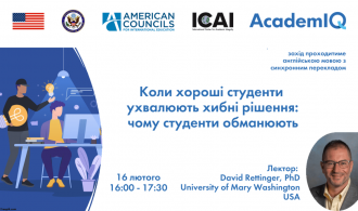 У вівторок, 16 лютого о 16:00 відбудеться лекція радника проєкту «Ініціатива академічної доброчесності та якості освіти», почесного президента Міжнародного центру академічної доброчесності Девіда Ретінджера «Коли хороші студенти ухвалюють хибні рішення: чому студенти обманюють».