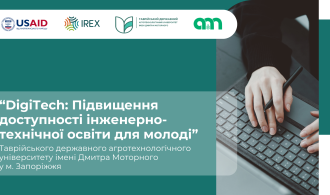У Таврійському державному агротехнологічному університеті імені Дмитра Моторного розпочато реалізацію проєкту “DigiTech: Підвищення доступності інженерно-технічної освіти для молоді” спільно з Інформаційно-консультаційним центром “Агро-Таврія” в межах програми “Мріємо та діємо”, яка впроваджується за фінансової підтримки Агентства США з міжнародного розвитку (USAID) та виконується IREX.