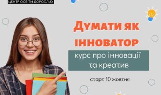 ✔️10 жовтня стартує курс в онлайн режимі «Думати, як інноватор» – експрес-курс з дизайн-мислення, який навчить вас продукувати та впроваджувати інновації, що покращують життя людей.