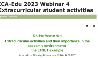 Професорсько-викладацький колектив Таврійського державного агротехнологічного університету імені Дмитра Моторного запрошено взяти участь у вебінарі від Міжнародної асоціації ІСА на тему: Extracurricular activities and their importance in the academic environment: the EFSET example ( Позакласні заходи та їх значення в академічному середовищі: приклад EFSET), який відбудеться 22 червня 2023 р.