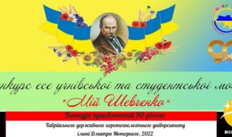 Громадська організація “Інноваційні обрії України” та Таврійський державний агротехнологічний університет імені Дмитра Моторного запрошують студентську та учнівську молодь до участі у конкурсі есе до 90-річчя Таврійського державного агротехнологічного університету імені Дмитра Моторного «Мій Шевченко».