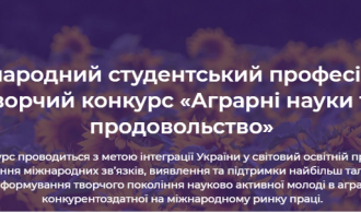 Згідно з наказом Міністерства освіти i науки України від 12.10.2021 р. № 1096, оголошено проведення Міжнародного студентського професійного творчого конкурсу «Аграрні науки та продовольство».