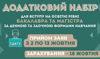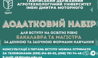 Таврійський державний агротехнологічний університет імені Дмитра Моторного пропонує скористатися можливістю вступу на навчання для отримання освітнього ступеня бакалавра або магістра в рамках останнього етапу додаткового набору 2023 року.