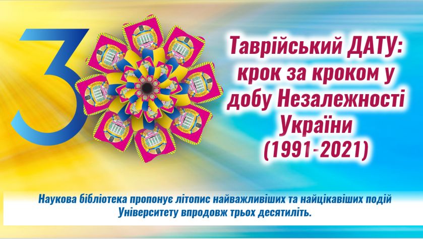 24 серпня Україна урочисто відзначатиме 30-річчя нашої Незалежності. З цієї нагоди Наукова бібліотека анонсує віртуальний літопис: «Таврійський ДАТУ: крок за кроком у добу Незалежності України».