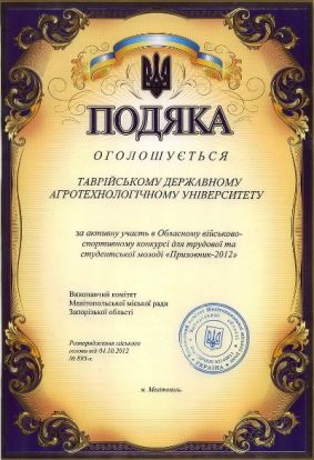 Таврійський ДАТУ постійний учасник і неодноразовий переможець Обласного військово-спортивного конкурсу для студентської молоді «Призовник».