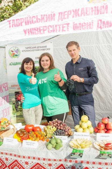 Відзначилися і інші кафедри, зокрема кафедра плодоовочівництва, виноградарства та біохімії також прийняла участь у святкових заходах -для мешканців міста було проведено майстер-клас з дегустації різних сортів яблук (Семиренко, Моді, Голден Делішес, Пінова, Айдаред, Флоріна). Діти отримували в подарунок екзотичний огірок – ангурію, вирощену в навчально-дослідній теплиці ТДАТУ.