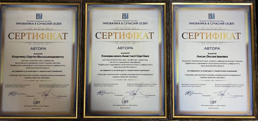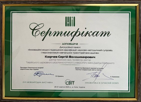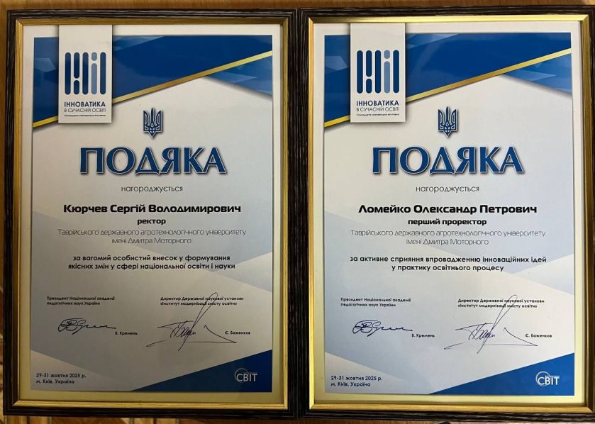 Таврійський державний агротехнологічний університет імені Дмитра Моторного представив свої досягнення в номінації «Науково-методичний супровід упровадження науково-інноваційних освітніх проєктів і програм».