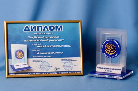 Компетентне журі оргкомітету виставки нагородило ТДАТУ Дипломом «Кращий виставковий стенд» у номінації “Інформативність стенду та якість рекламних матеріалів”.