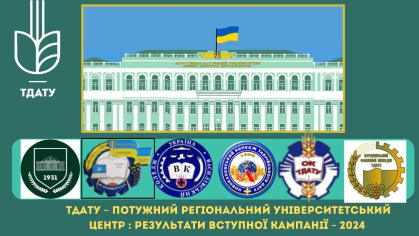 Таврійський державний агротехнологічний університет імені Дмитра Моторного підтвердив, що є потужним регіональним університетським центром, у структурі якого 6 коледжів, 4 науково-дослідні інститути, 4 факультети і ННІ загальноуніверситетської підготовки. На сьогодні в регіональному університетському центрі ТДАТУ – РУЦ ТДАТУ навчається понад 9700 студентів. І це достатньо високий результат.