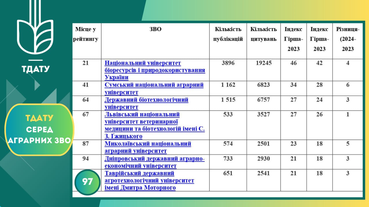 ТДАТУ серед сотні кращих у рейтингу університетів за показниками Scopus 2024 року