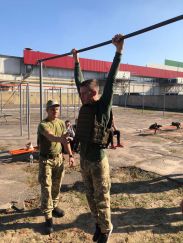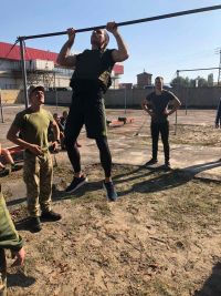Команда також добре виконала підтягування на перекладині у бронежилеті масою 15 кілограм. П’ять представників команди за відведений час здійснили в сумі 66 зарахованих підтягувань, зайнявши друге командне місце у цьому виді. Представник нашої команди Чердаклієв Артем зумів підтягнутись 22 рази!