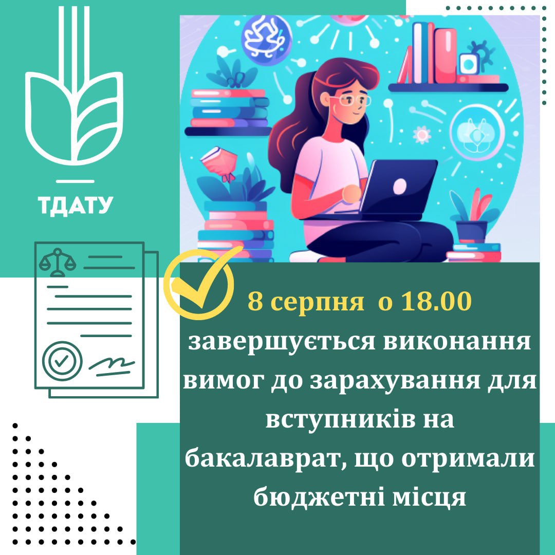 Термін виконання вимог до зарахування на бюджетну форму навчання завершується о 18 годині