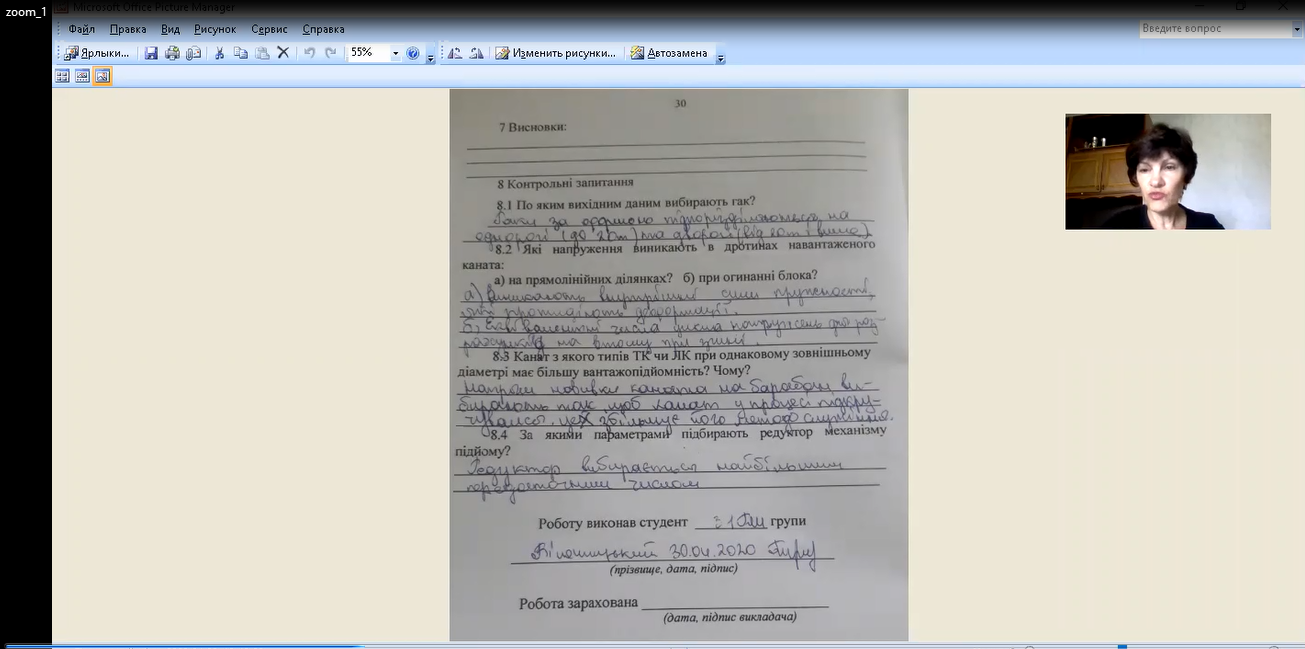 12.05.2020 відбулось чергове онлайн заняття доцента кафедри ТМКП Дерези О.О. з використанням платформи ZOOM. Заняття було проведено для студентів 31 ГМ групи факультету МТФ спеціальності 133 «Галузеве машинобудування». Лекційний матеріал студенти опановують самостійно на порталі, складні питання розглядаються на платформі ZOOM, лабораторні та практичні заняття відпрацьовують і здають на електронну пошту.