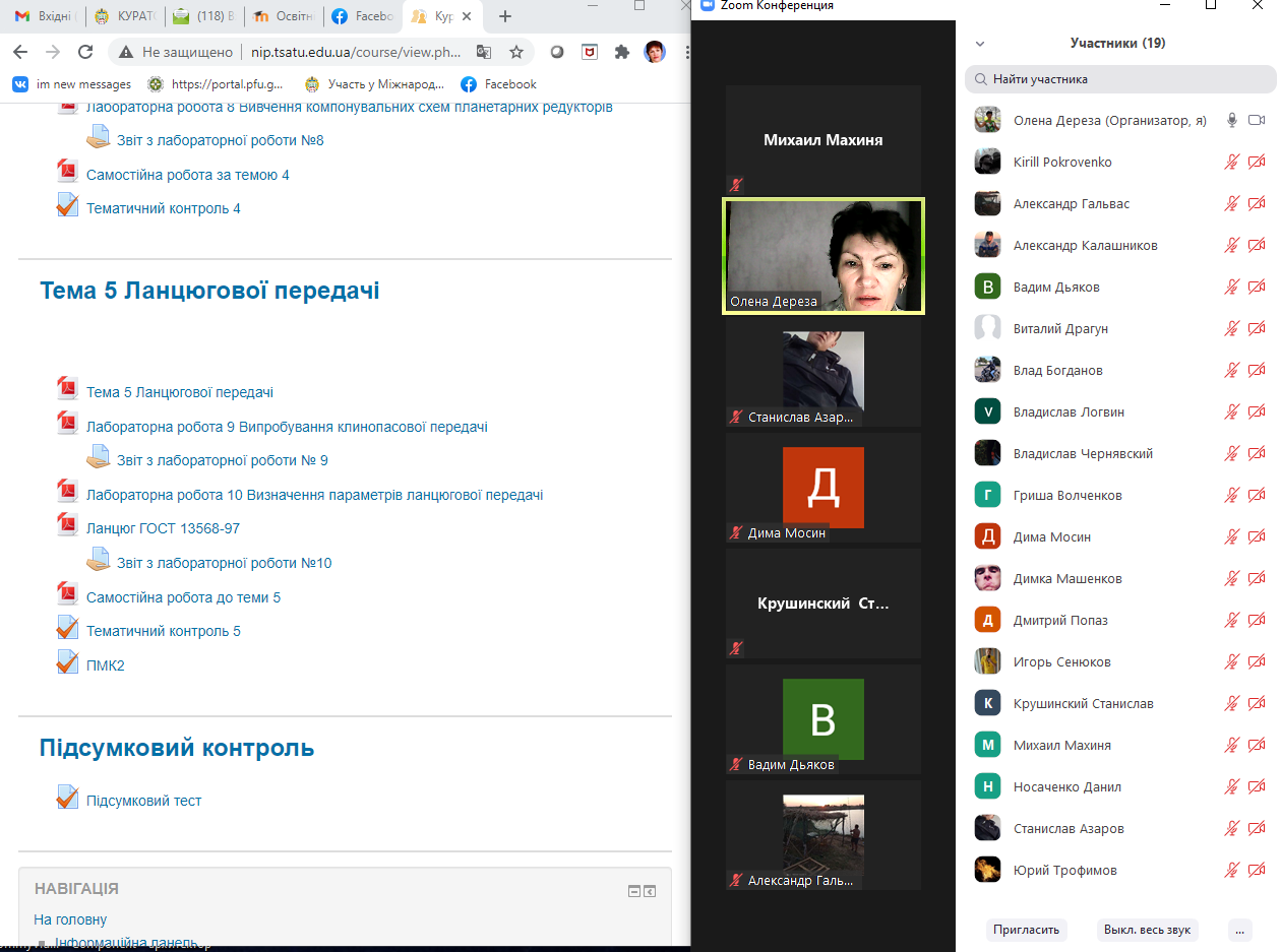Методика проведення екзаменів за допомогою платформи ZOOM була апробована в літню сесію 2020 року. 01.12.2020 р. на платформі ZOOM було проведено ПМК2 для 23АСІ групи з дисципліни “Інженерна механіка (Деталі машин)” ведучий викладач доцент Дереза О.О. Результати сесії буде відображено в електронному журналі. Дистанційне навчання в реаліях сьогодення є найкращою альтернативою в боротьбі з поширенням захворювання.