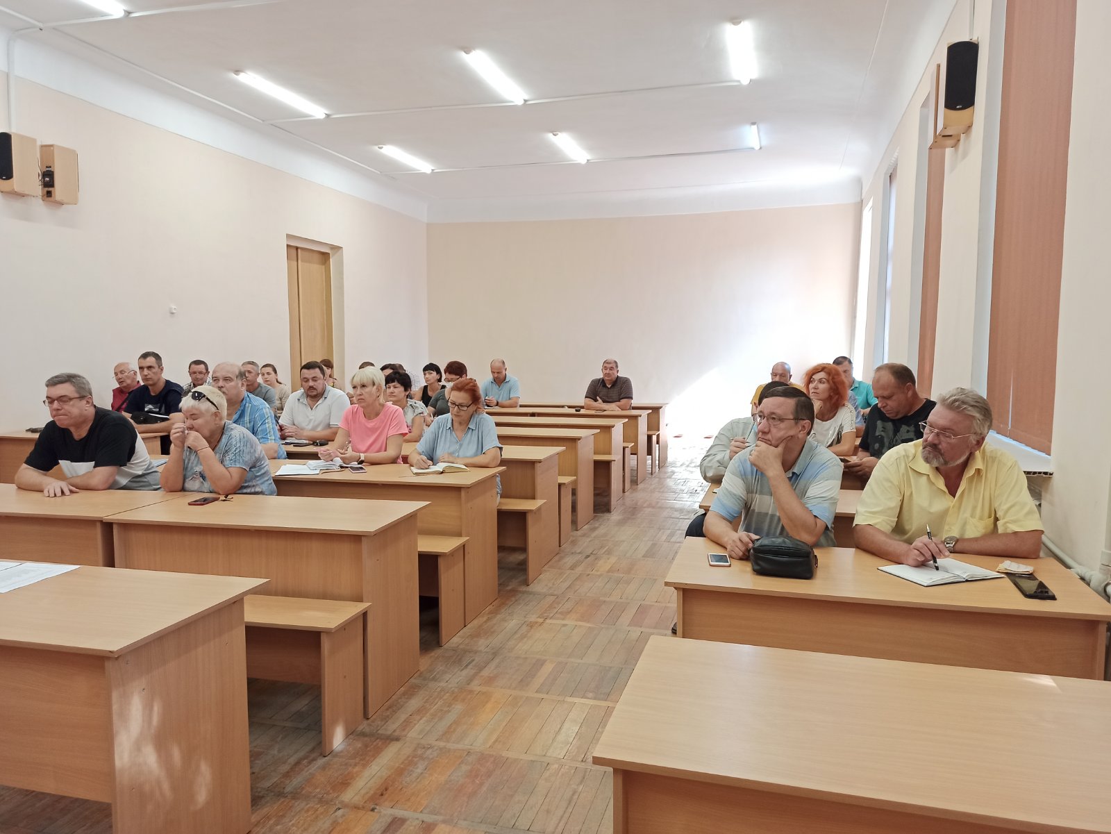 На початку зборів Сергій Володимирович привітав всіх з початком нового навчального року, побажав всім успіхів, здоров’я та натхнення. Потім звітував про результати вступної компанії. Була проведена величезна робота, в результаті якої факультет виконав всі вимоги щодо набору абітурієнтів. Щиро подякував всім за проведену профорієнтаційну роботу.