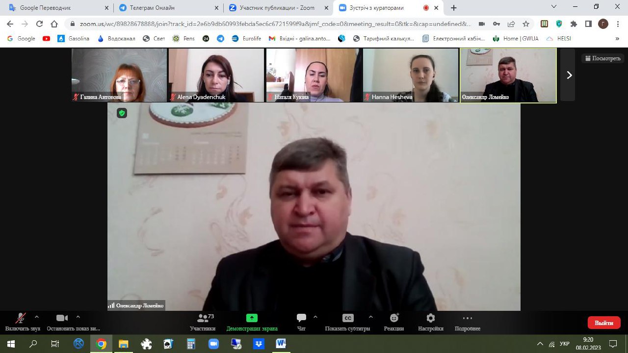 В середу 08.02.2023 р. відбулося зібрання кураторів з міжнародним відділом ТДАТУ щодо роз’яснення процедури про укладання договорів стосовно проходження закордонних практик студентами, які зараз знаходяться за кордоном. Куратори кафедри ІМКП також були присутні на цій нараді, мета якої зорієнтувати студентів, які знаходяться за кордоном на проходження практики або оформлення академічної мобільності (за можливості). Фахівці міжнародного відділу запропонували два етапи вирішення проблеми: збір та деталізація даних щодо актуального місця перебування, працевлаштування здобувачів на даний момент та звітування за запропонованою формою. Фахівець міжнародного відділу ТДАТУ Вікторія Лемещенко-Лагода попросила кураторів допомогти з оформленням даних і за можливості заповнити форму разом із студентами.