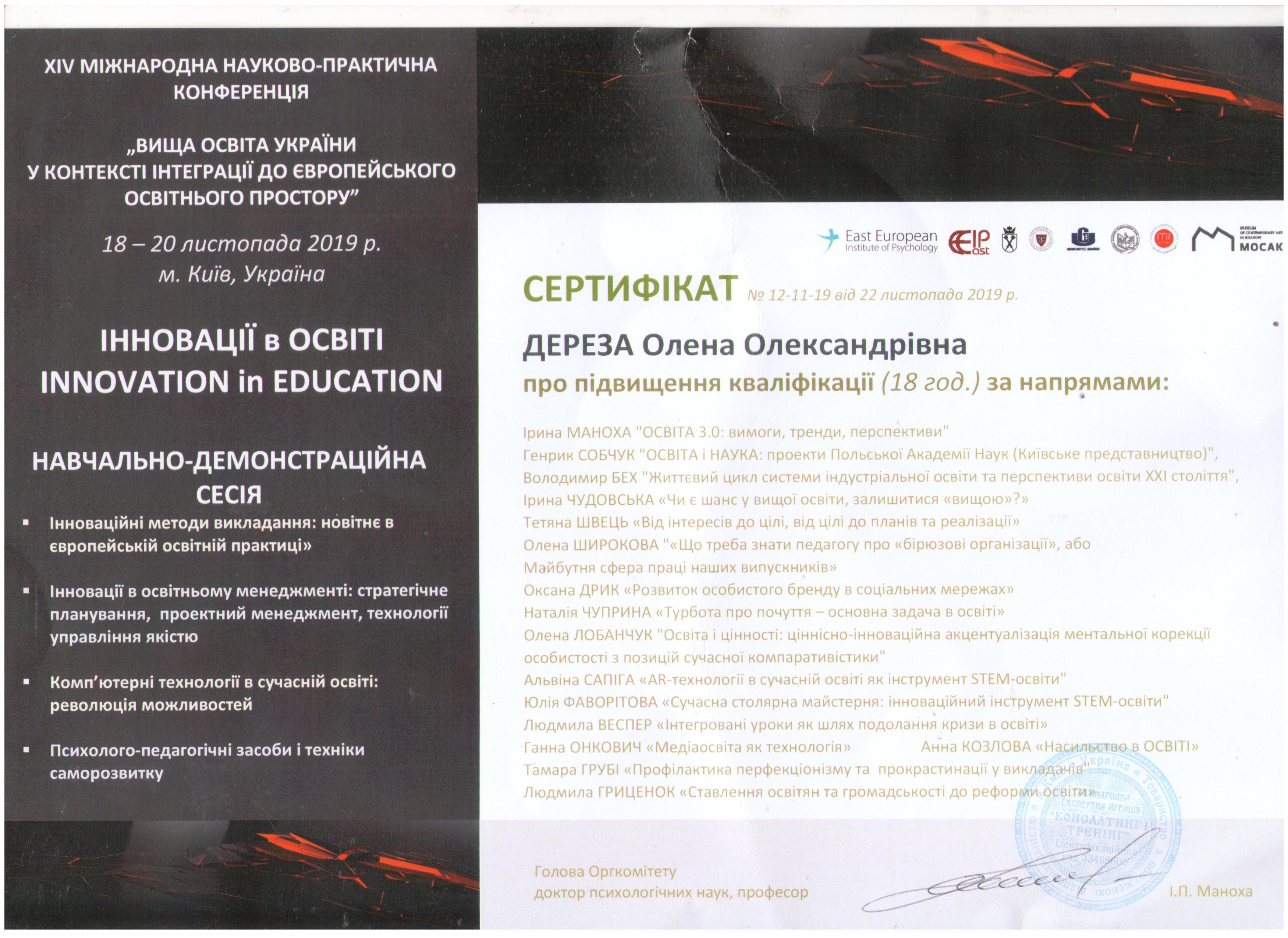 Учасником навчально-демонстраційних сесій була доцент Дереза О.О. (сертифікат)
