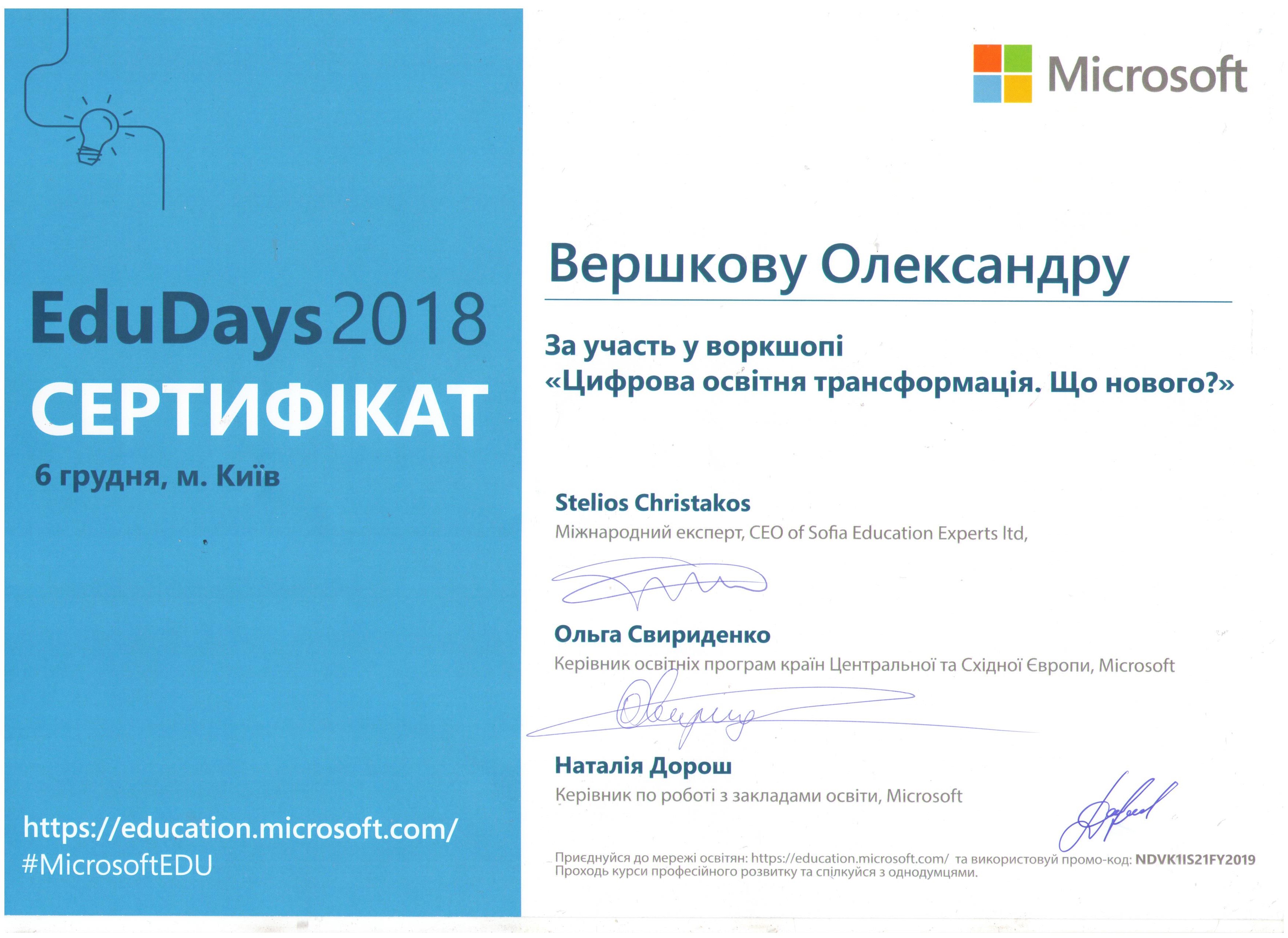 6 грудня 2018 року проходила Конференція Microsoft EduDays 2018 “Цифрова освітня трансформація. Що нового?”. В рамках «Освітніх днів Майкрософт в Україні» були запрошені проректори відповідальних за IT напрямки, міжнародні зв’язки та інноваційні технології до участі у конференції для Вищих навчальних закладів.