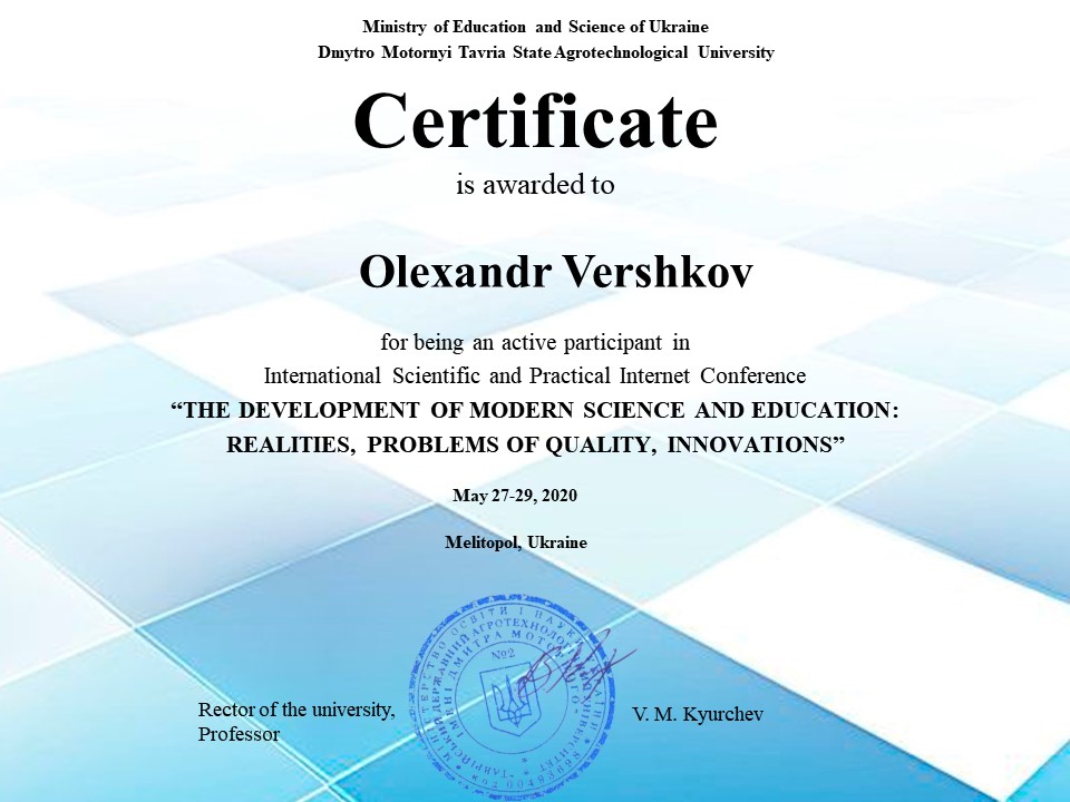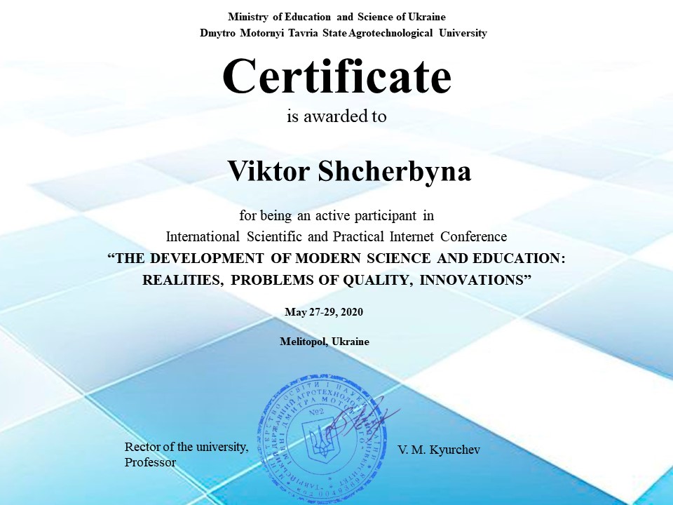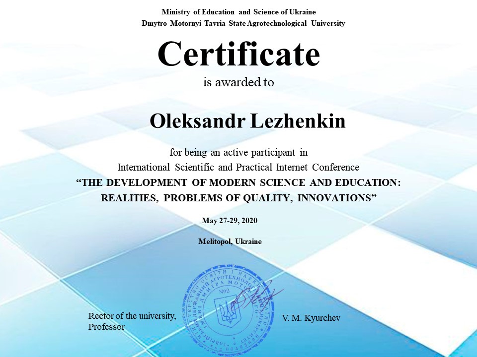 14-15 листопада 2018 року проводилась VІІ Всеукраїнська науково-практична Internet-конференція студентів і молодих учених „Автоматизація та інформаційні технології: стан, досягнення, перспективи розвитку” Бердянськ, Бердянський університет менеджменту і бізнесу