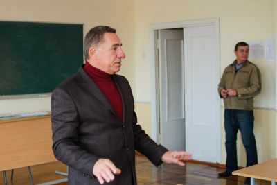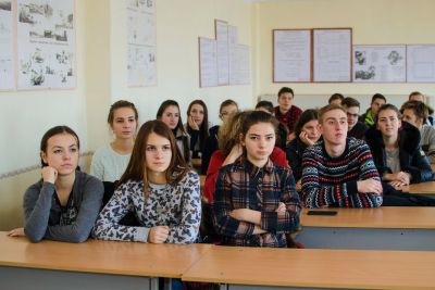 З учнями на кафедрі зустрився декан факультету ІКТ доц. Вершков О.О. Декан розповів про усі факультети ТДАТУ, про умови вступу та коефіцієнти зарахування, про предмети, які потрібно скласти на ЗНО. Учні з уважністю слухали інформвцію до цього. Також Олександр Олександрович розповив про гарантійне працевлаштування випускників нашого факультету.
