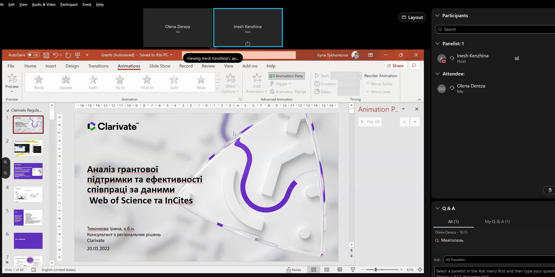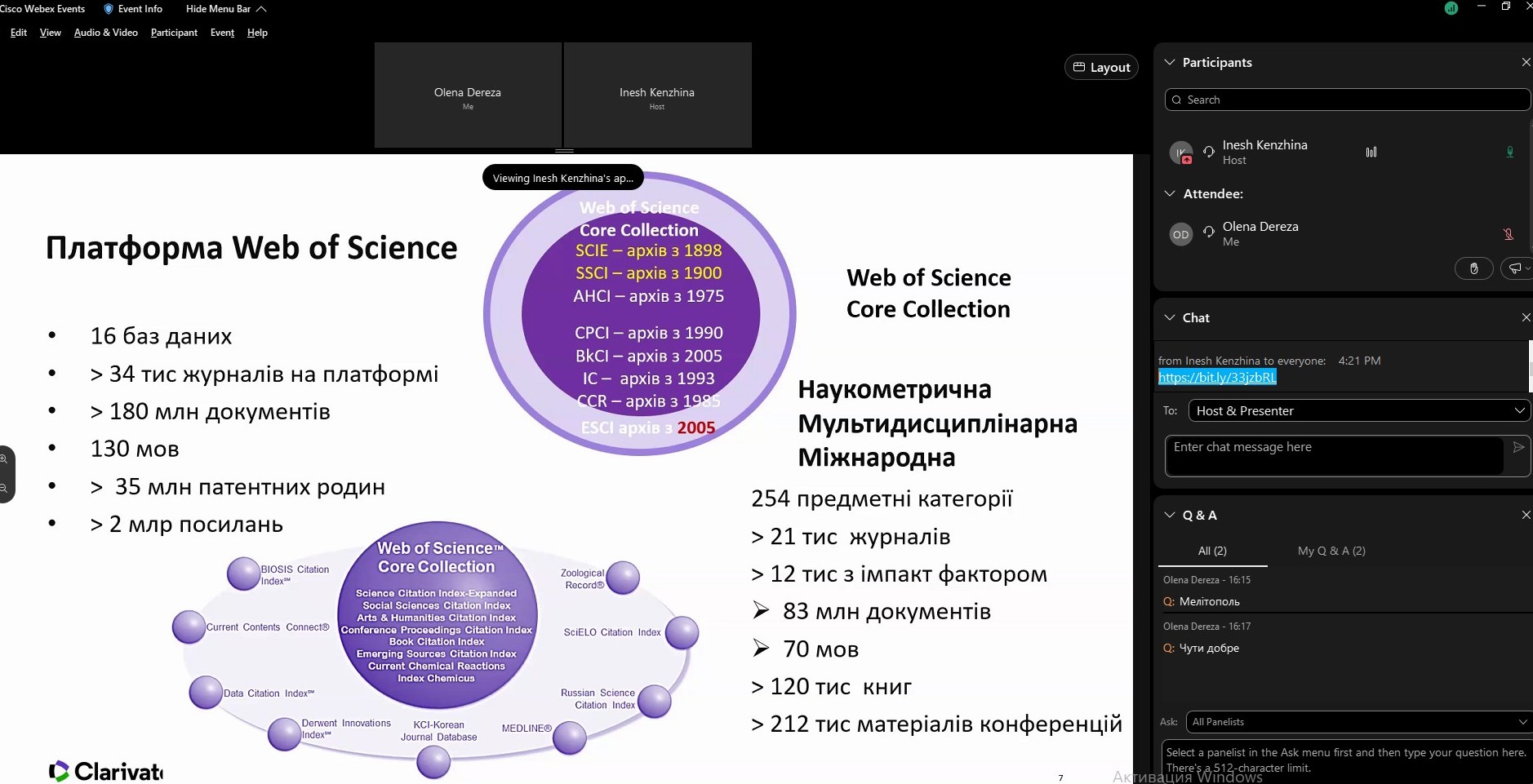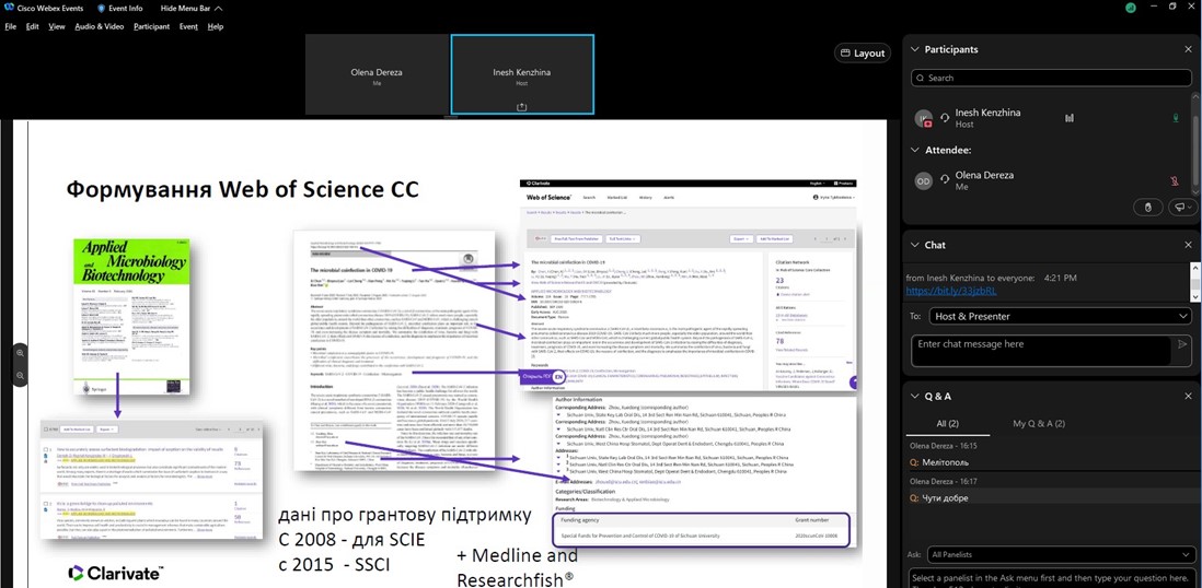 Вебінар проводила консультант з регіональних рішень Clarivate Тихонкова Ірина, к.б.н.
