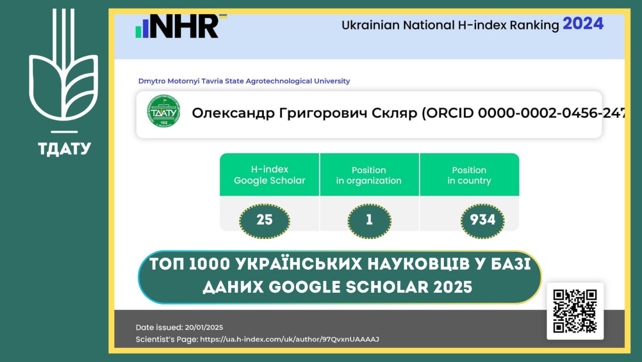 ТОП 10 вчених ТДАТУ у Google Scholar за H-index за 2024 рік