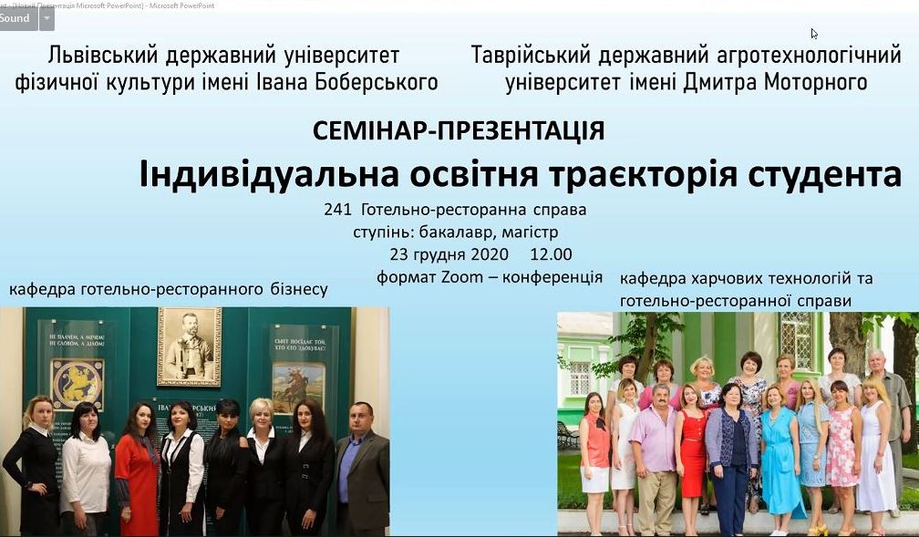Міжвузівський семінар «Індивідуальна освітня траєкторія студента» був організований викладачами кафедри харчових технологій та готельно-ресторанної справи Таврійського державного агротехнологічного університету імені Дмитра Моторного та кафедри готельно-ресторанного бізнесу Львівського державного університету фізичної культури імені Івана Боберського. У роботі семінару також взяли участь студенти спеціальності 241 «Готельно-ресторанна справа».