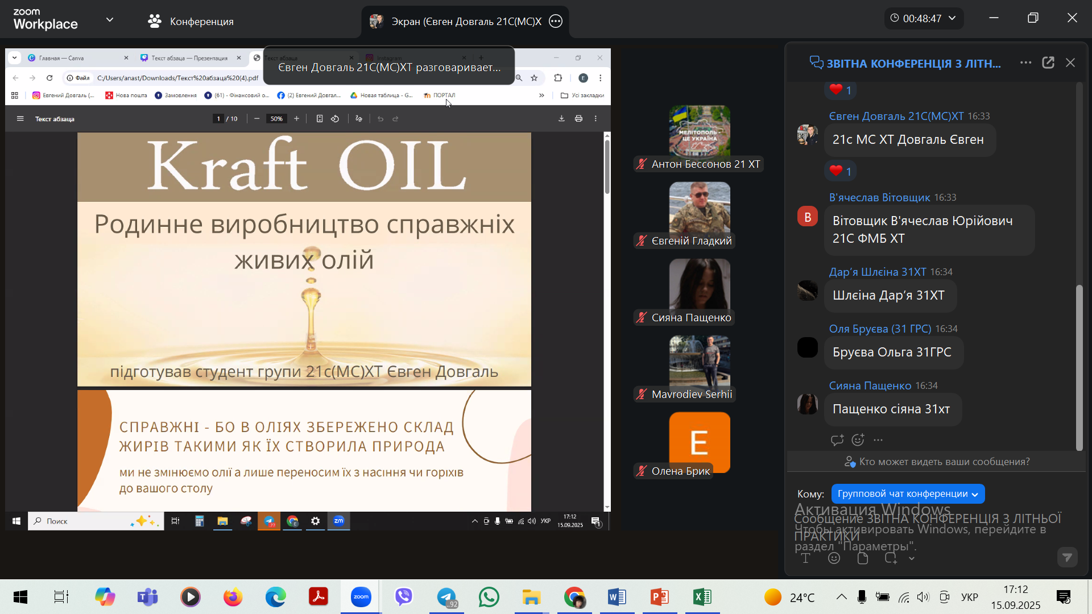 НА КАФЕДРІ ХТГРС ВІДБУЛАСЯ ЗВІТНА КОНФЕРЕНЦІЯ З ЛІТНІХ ВИРОБНИЧИХ ПРАКТИК-2025