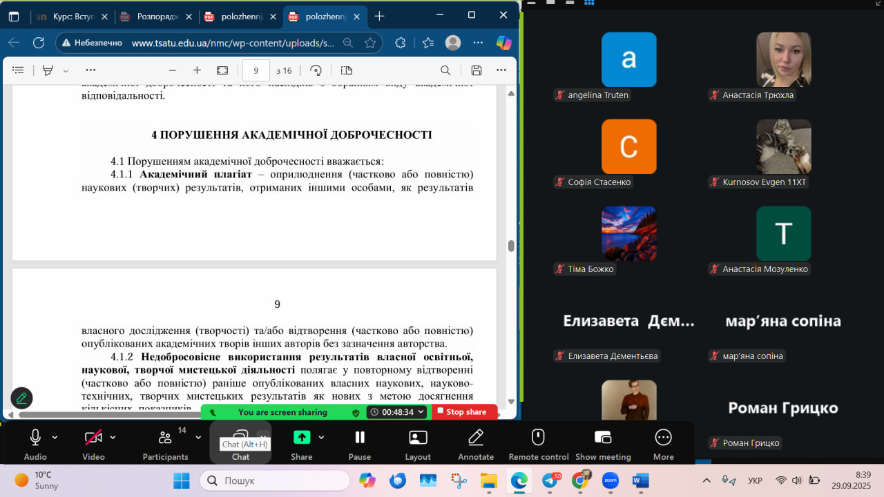 Онлайн-зустріч гаранта ОПП «Харчові технології» з бакалаврами першого року навчання