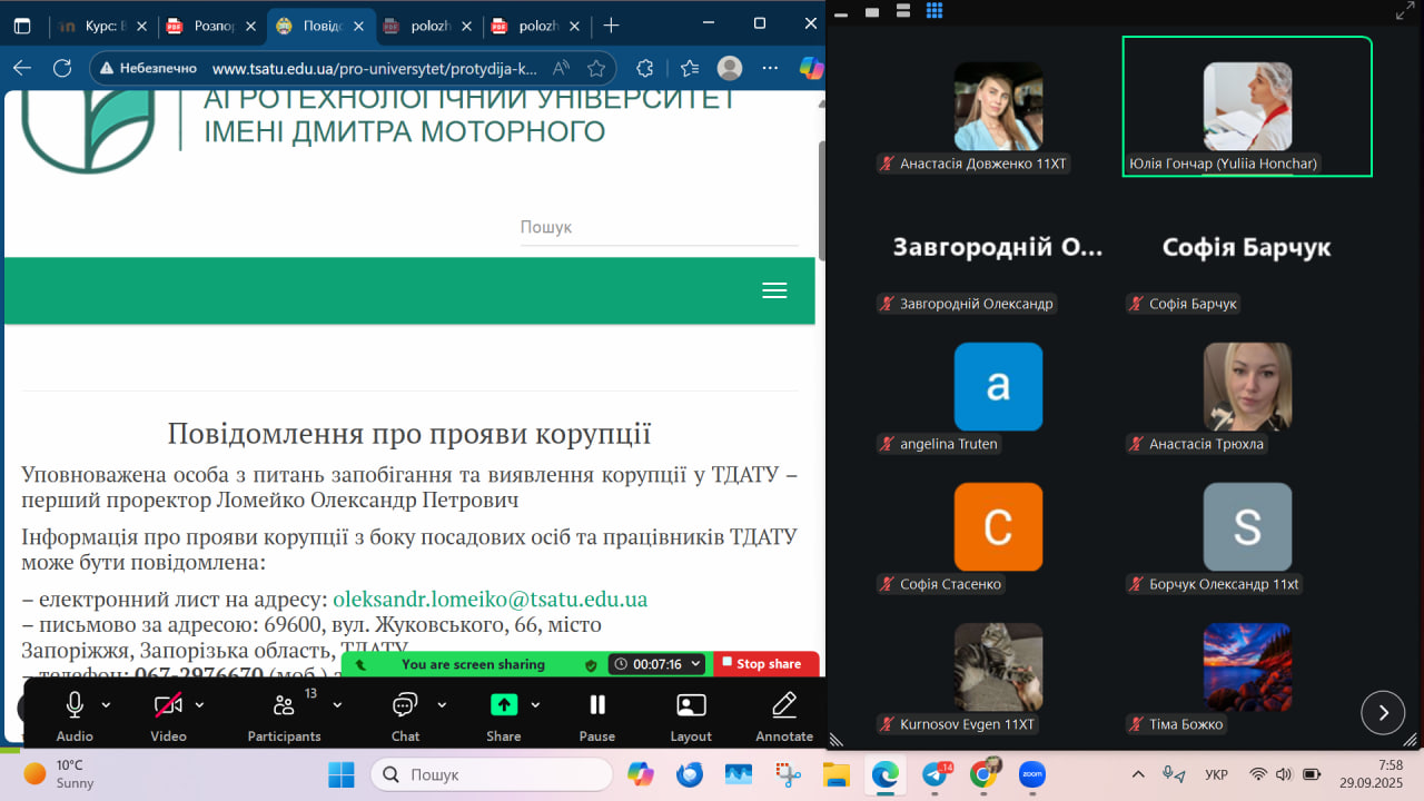 Онлайн-зустріч гаранта ОПП «Харчові технології» зі студентами щодо дотримання етичних норм, протидії корупції, булінгу та дискримінації